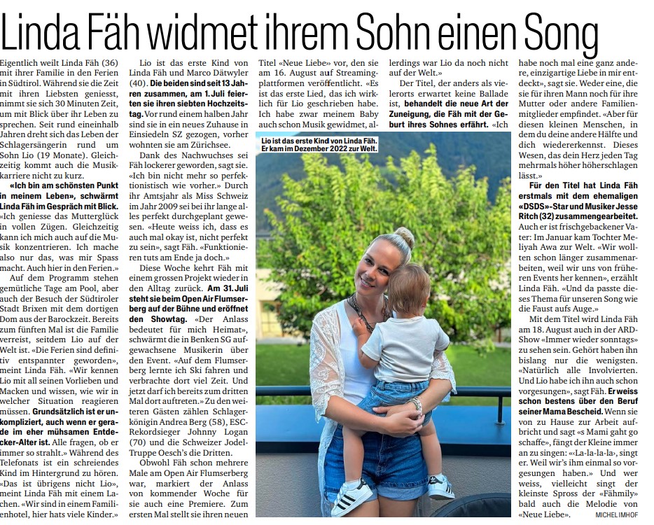 Blick – Linda Fäh widmet ihrem Sohn einen Song